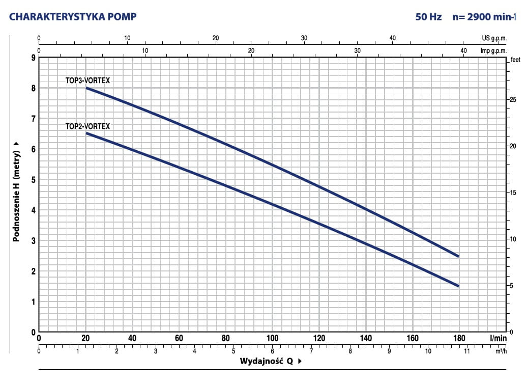 Pompy zatapialne TOP VORTEX wyposażone są w wirniki typu VORTEX, które nie maja bezpośredniego kontaktu z tłoczoną cieczą. Ich praca powoduje krążenie medium dookoła korpusu pompy. Dzięki temu większe zanieczyszczenia mogą swobodnie przepłynąć przez pompę nie zapychając jej.