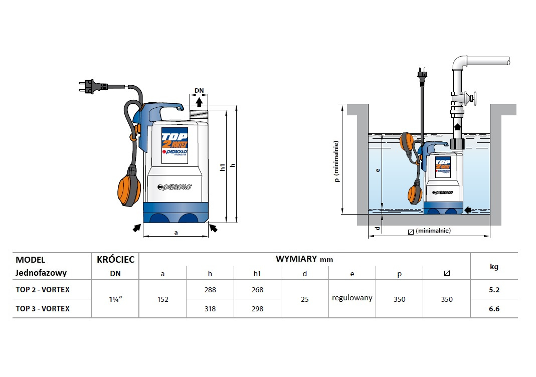 - pompa zatapialna TOP 2 VORTEX 230V PEDROLLO